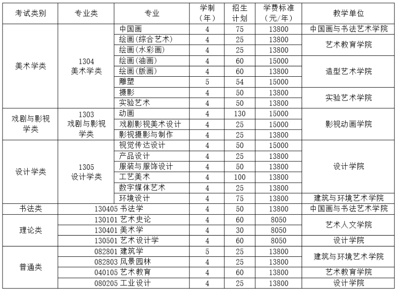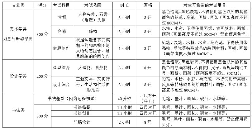 注:报名参加我校校考的考生,只能在美术学类、戏剧与影视学类、设计学类、书法类中选择一类报考,不可兼报。