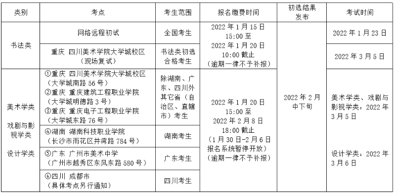 注:考试具体要求详见《四川美术学院2022年本科招生专业考试大纲》,网址:https://www.scfai.edu.cn/zsb/info/1002/2263.htm。